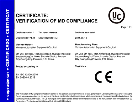 查看更多 +熱烈慶祝佛山市順德區(qū)育能裝備有限公司通過2021年歐盟CE認證。CE認證,即只限于產品不危及人類、動物和貨品的安全方面的基本安全要......